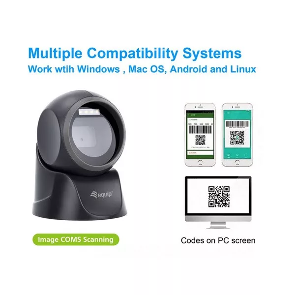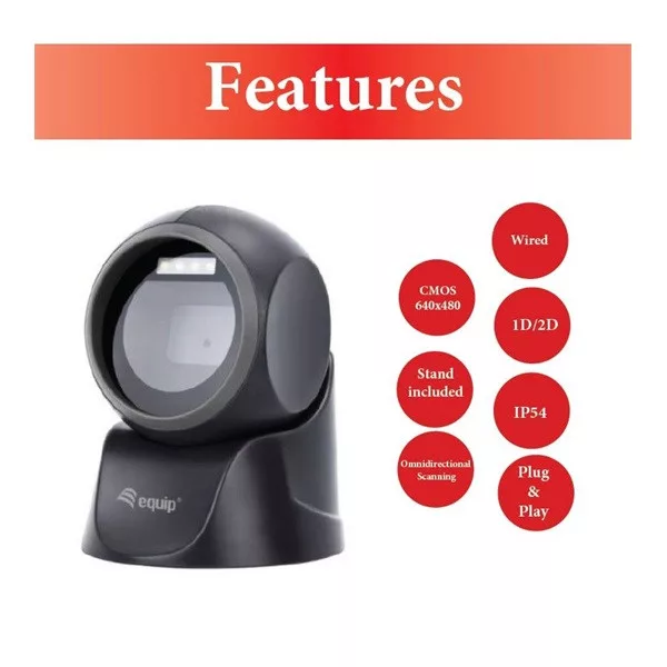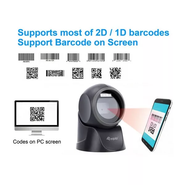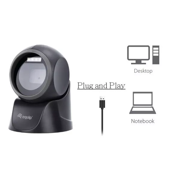 Equip Asztali Vonalkód olvasó - 351027 (2D, omnidirekcionális, vezetékes, fekete)