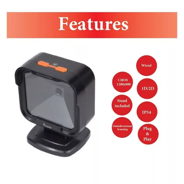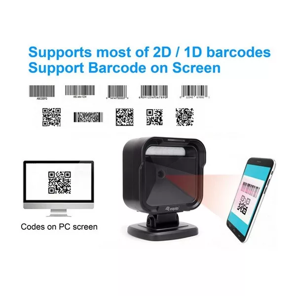 Equip Asztali Vonalkód olvasó - 351028 (2D, omnidirekcionális, vezetékes, fekete)