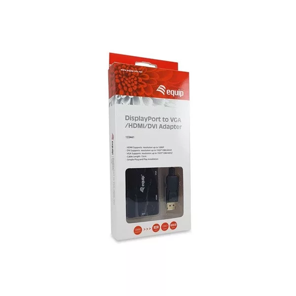 Equip Átalakító - 133441 (DisplayPort to VGA/HDMI/DVI, fekete)