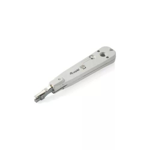 The equip® LSA punch down tool for all data, information and telecommunications cabling. Applicable for all LSA-series and RJ45 jacks and high band. Allows the connection of conductor diameters (0.35~0.9mm) and core diameters (0.7~2.6mm). When wiring a second wire in contact, the sensor is switched off (depending on number of wires and wire specification). The cutter can be switched off to allow the looping of a potential on adjacent contacts