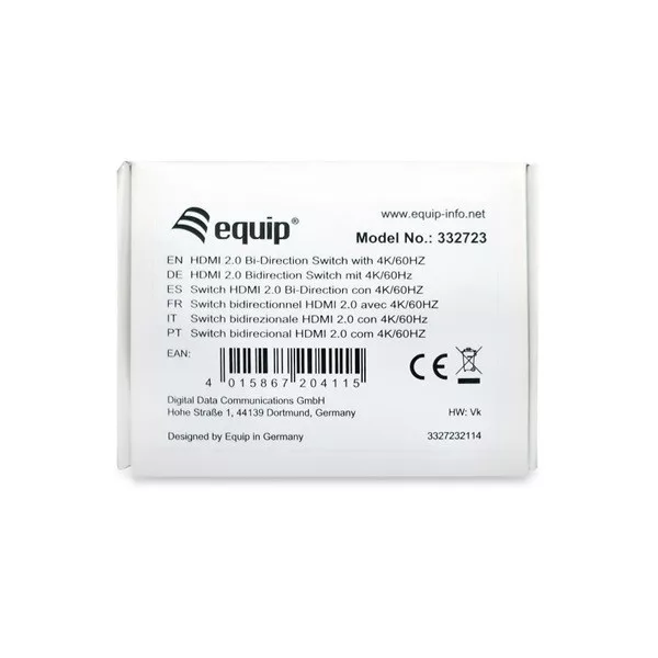 Equip HDMI Switch - 332723 (1x Bemenet, 2x Kimenet, két irányú jelátvitel, fekete)