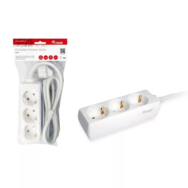 Equip Hálózati Elosztó - 245550 (3 Schuko, Max.: 3500W, 1,5m kábel, fehér)