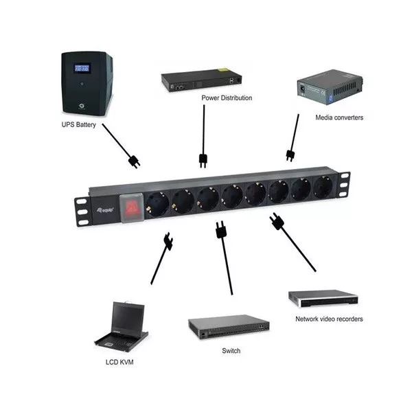 Equip Hálózati Elosztó - 333286 (C14, 8 Schuko, Rack 1U, 1,8m kábel, fekete)