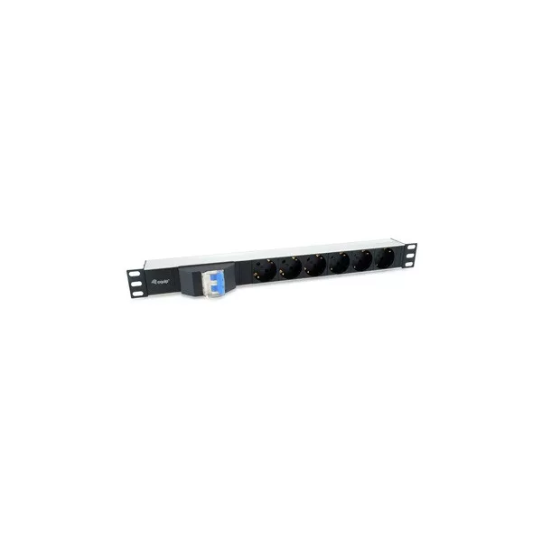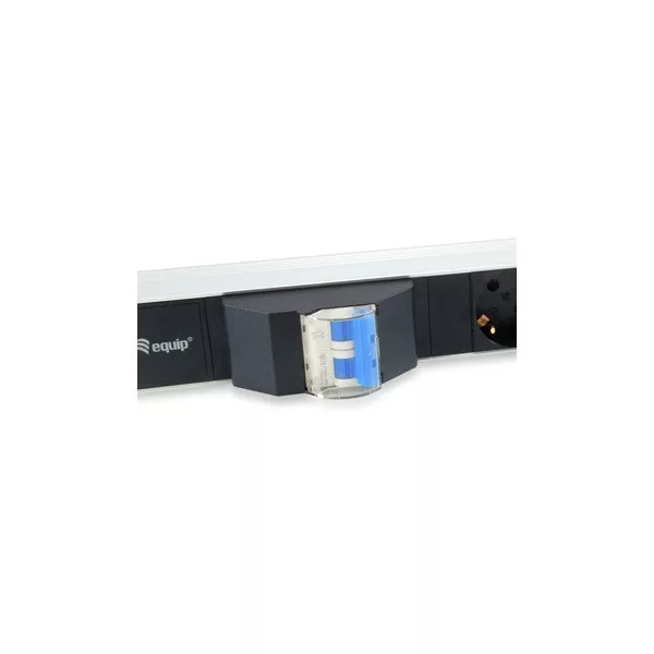 Equip Hálózati Elosztó - 333312 (C14, 6x Schuko, Rack 1U, biztosíték, 1,8m kábel, aluminium, fekete)