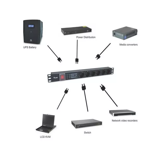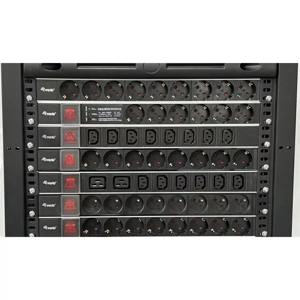 Equip Hálózati Elosztó - 333317 (Schuko, 6 Schuko, túlfeszültség védett, Rack 1U, 1,8m kábel, fekete)