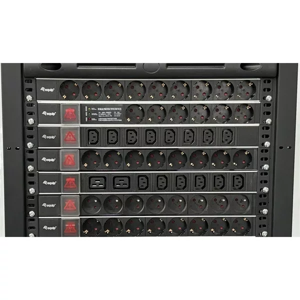 Equip Hálózati Elosztó - 333318 (Schuko, 12x C13, Rack 1U, 1,8m kábel, fekete)