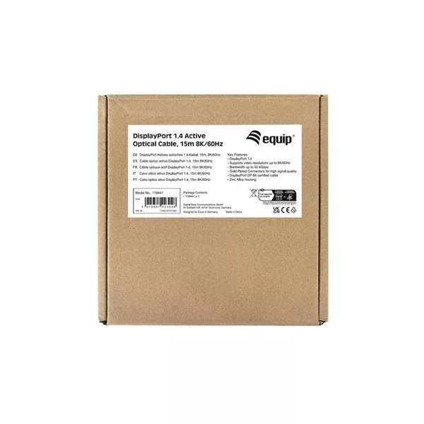 Equip Kábel - 119441 (Aktív, DisplayPort 1.4, apa/apa, 8K/60Hz, HDCP/HDR/DSC/MST, aranyozott, 15m)