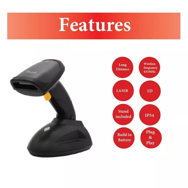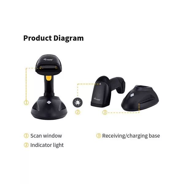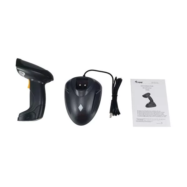 Equip Kézi Vonalkód olvasó - 351025 (1D, lézeres, állvánnyal, vezeték nélküli, nagy hatótáv, fekete)