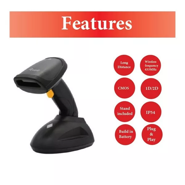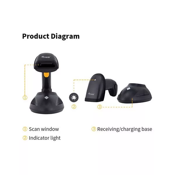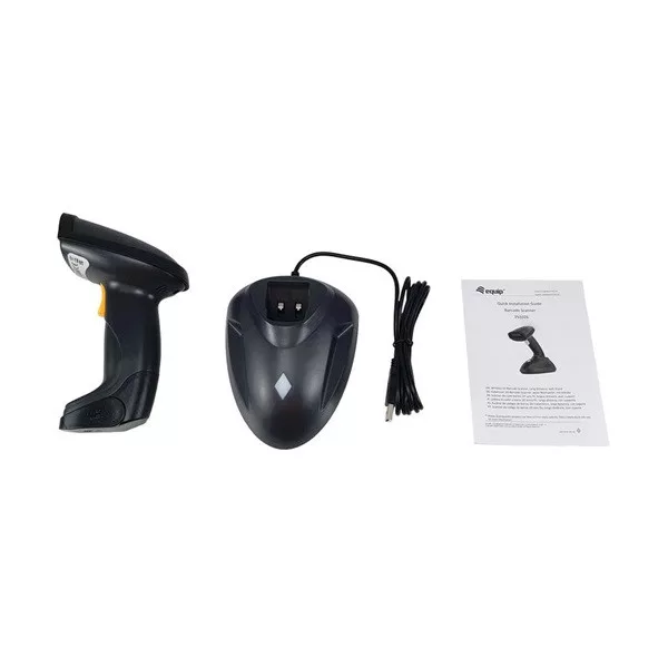 Equip Kézi Vonalkód olvasó - 351026 (2D, lézeres, állvánnyal, vezeték nélküli, nagy hatótáv, fekete)