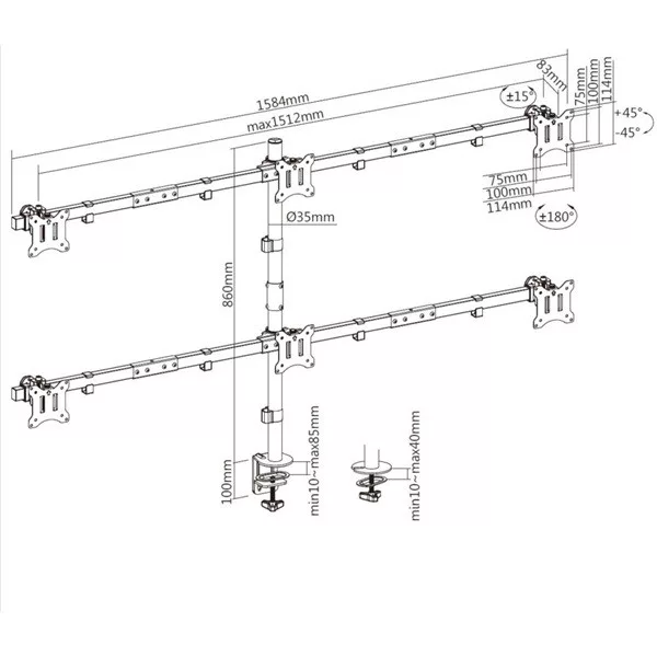Equip Monitor Asztali konzol - 650160 (13"-27", 6 monitor, dönthető, forgatható, állítható magasság Max.: 3x7kg, fekete)