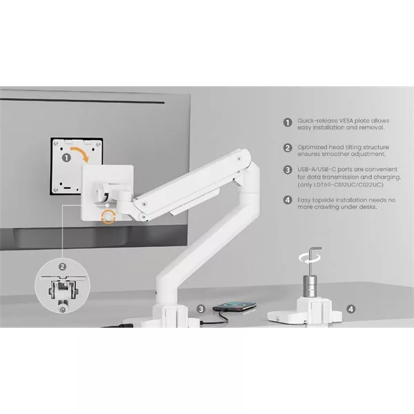 Equip Monitor Asztali konzol - 650181 (17"-49", 1 monitor, dönthető, forgatható, Max.: 20kg, fehér)