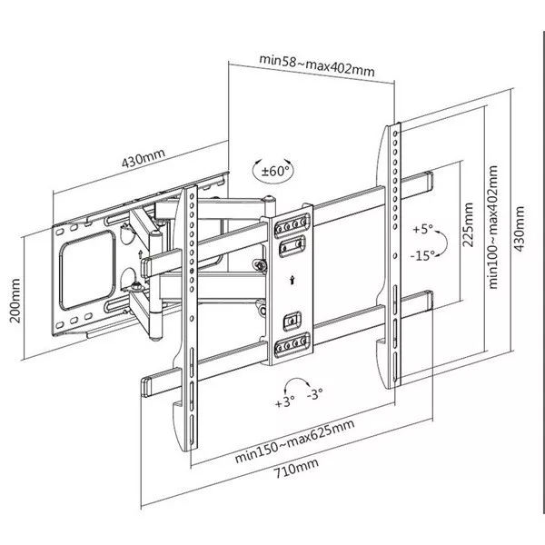 Equip TV Fali konzol - 650335 (37"-80", Max.: 60kg, dönthető, forgatható, fekete)