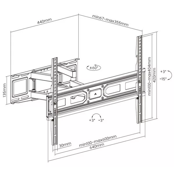Equip TV Fali konzol - 650337 (37"-80", Max.: 40kg, dönthető, forgatható, fekete)