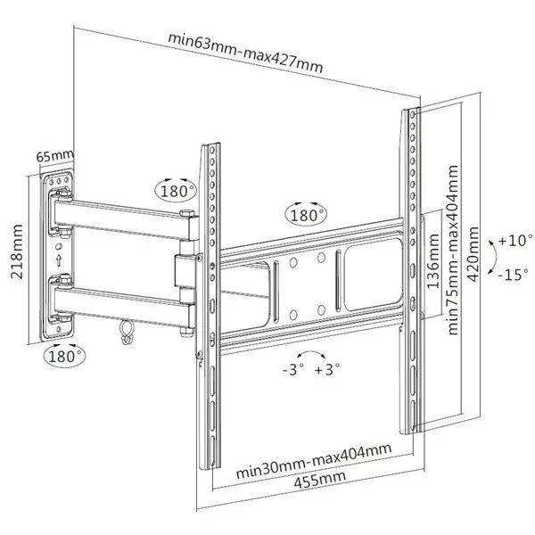 Equip TV Fali konzol - 650341 (32"-55", Max.: 35kg, dönthető, forgatható, fekete)