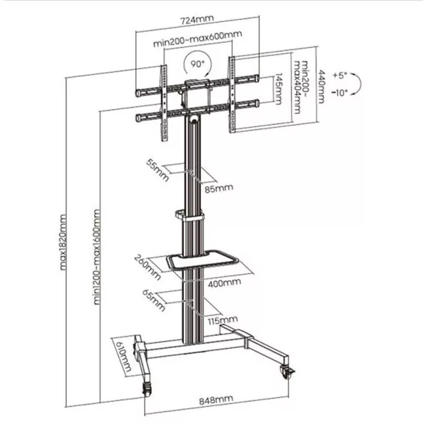 Equip TV állvány - 650630 (37"-86" álló, gurulós, forgatható 90°, dönthető, Max.:50kg, fekete)