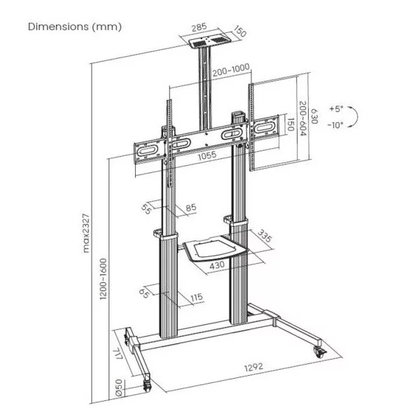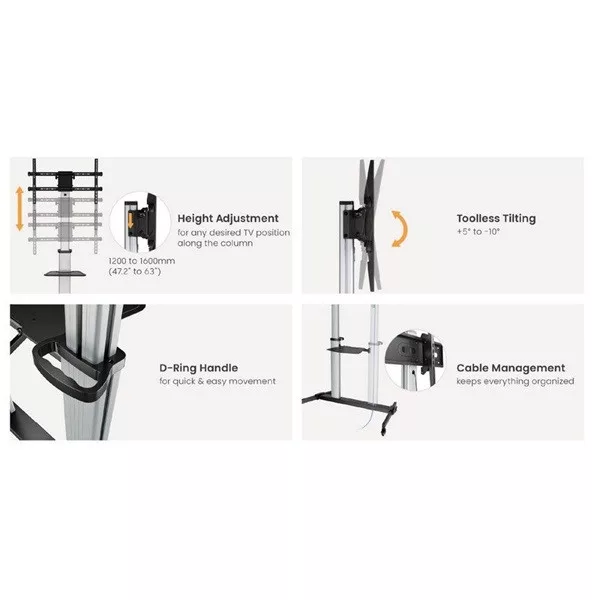Equip TV állvány - 650631 (60"-100" álló, dönthető, állítható magasság, gurulós, Max.:100kg, fekete/ezüst)