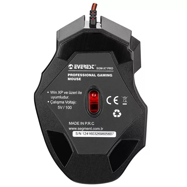 Everest Egér Gamer és egér pad - SGM-X7 PRO (7200DPI, 7 gomb, harisnyázott kábel, fekete)