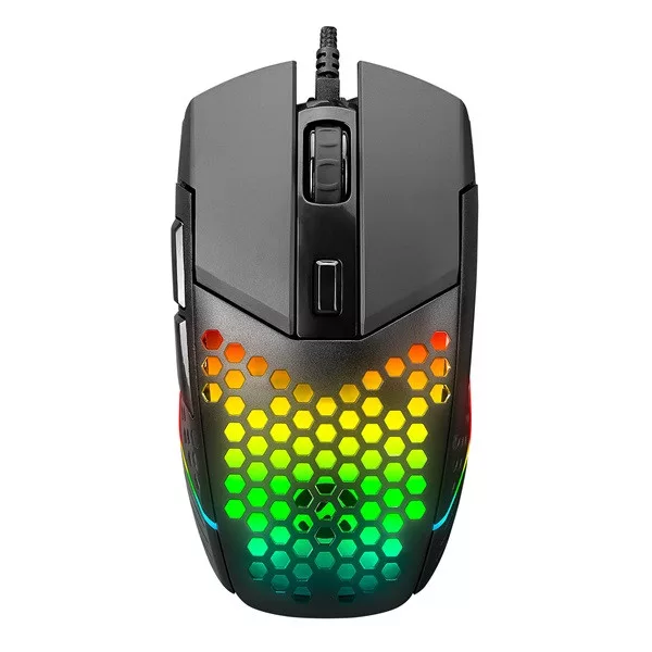 Everest Gamer Egér - SM-GX19 ANGARD (7200 DPI, 6gomb, 1,5m harisnyázott kábel,optikai, fekete, RGB LED)