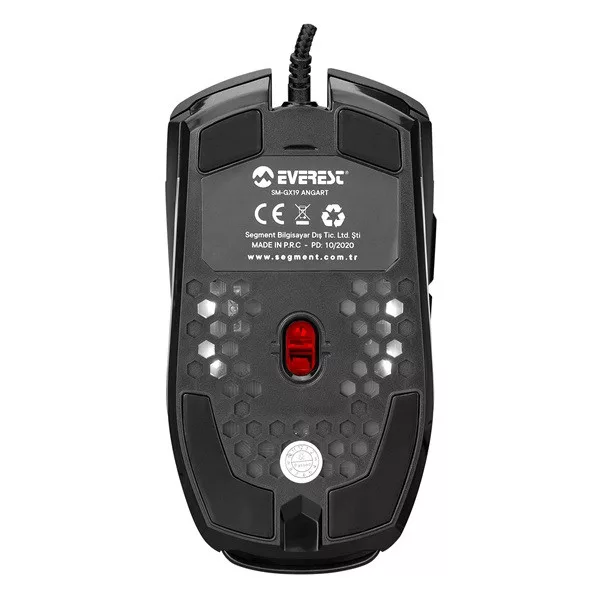 Everest Gamer Egér - SM-GX19 ANGARD  (7200 DPI, 6gomb, 1,5m harisnyázott kábel,optikai, fekete, RGB LED)