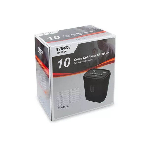 Everest Iratmegsemmisítő - JP-736C (bankkártya vágás, cross cut, 2m/min, 360*220*396mm, 21 liter, fekete)