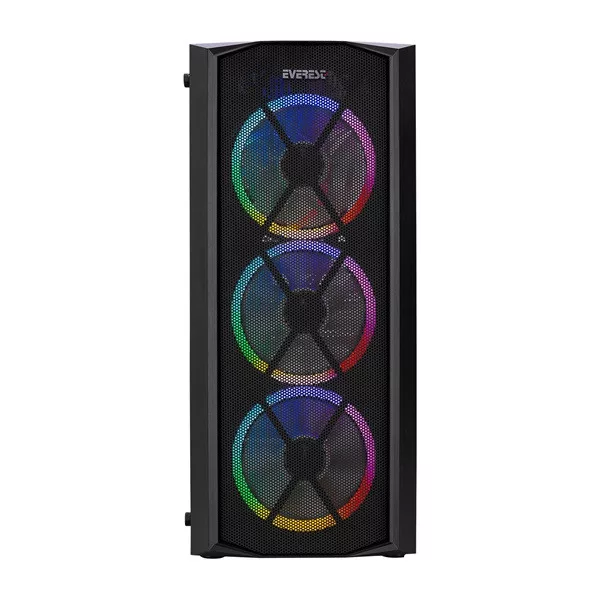 Everest Számítógépház - FLAT MESH (fekete; plexi; ATX; alsó táp; 4x120mm LED; 1xUSB3.0 + 2xUSB2.0, I/O; porszűrő)