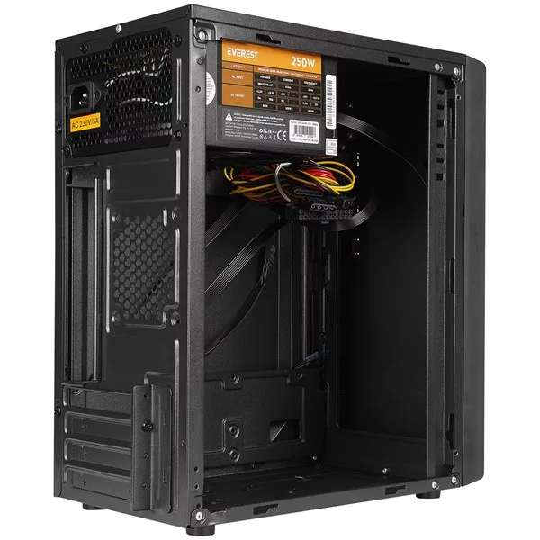Everest Számítógépház - WARP Peak 250W (fekete; Micro ATX / MINI-ITX, 250W táp, 2xUSB2.0 )
