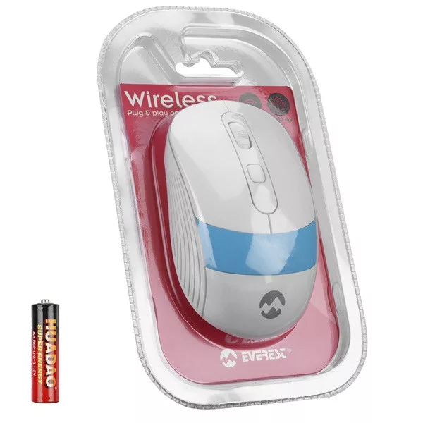 Everest Vezeték nélküli Egér - SM-18 Blue (1600 DPI, 4gomb, optikai, fehér-kék)