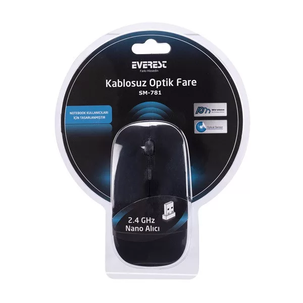 Everest Vezeték nélküli Egér - SM-781 (800 DPI, 4gomb, optikai, fekete)