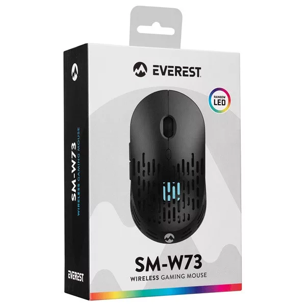 Everest Vezeték nélküli Egér - SM-W73 (1600 DPI, 6 gomb, optikai, fekete, RGB LED)