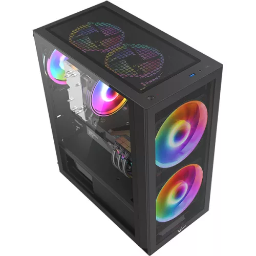 Formula Számítógépház - Air Power G5 Duo Black (fekete, ablakos, 2x16cm venti, ATX, 1xUSB3.0, 1xType-C)