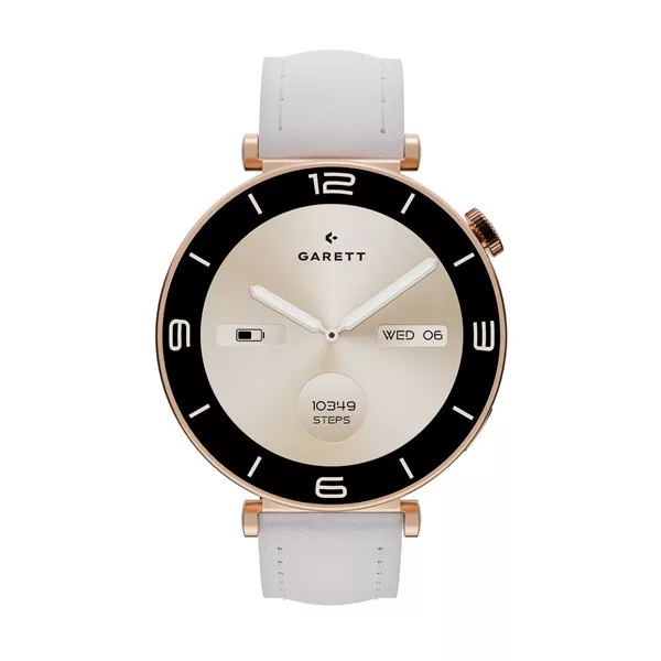smartwatch GARETT, kiegészítő bőrszíj, töltőkábel, QSG kézikönyv