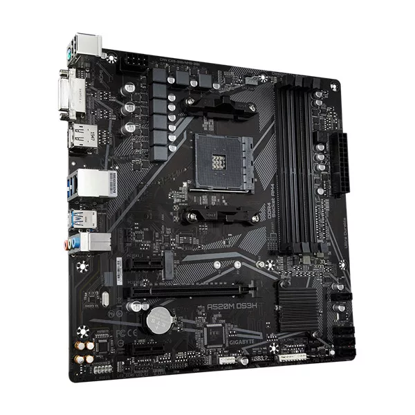 Gigabyte Alaplap - AMD A520M DS3H AM4 (A520M, 4xDDR4 3200MHz, PCI-E, RAID, 4xSATA3, M.2, 4xUSB2.0, 6xUSB3.1)