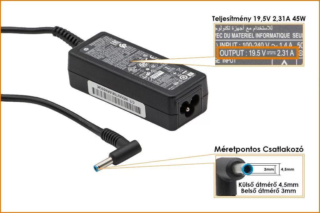 Eredeti, Gyári 45 Wattos laptop töltő HP laptophoz.