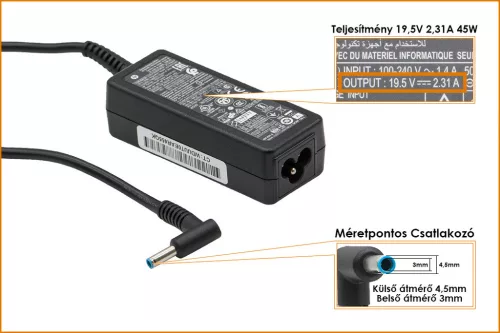 HP 19.5V 2.31A 45W vékony center-pin gyári új töltő (741727-001, 740015-002)