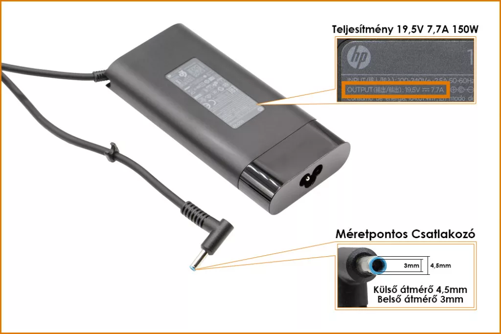 Eredeti, Gyári 150 Wattos laptop töltő HP laptophoz.