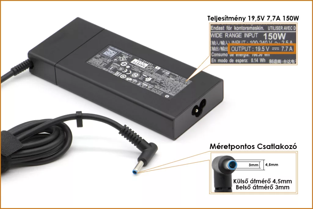 Eredeti, Gyári 150 Wattos laptop töltő HP laptophoz.