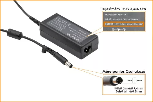Kiváló mínőségű 65 Wattos laptop töltő HP laptophoz.