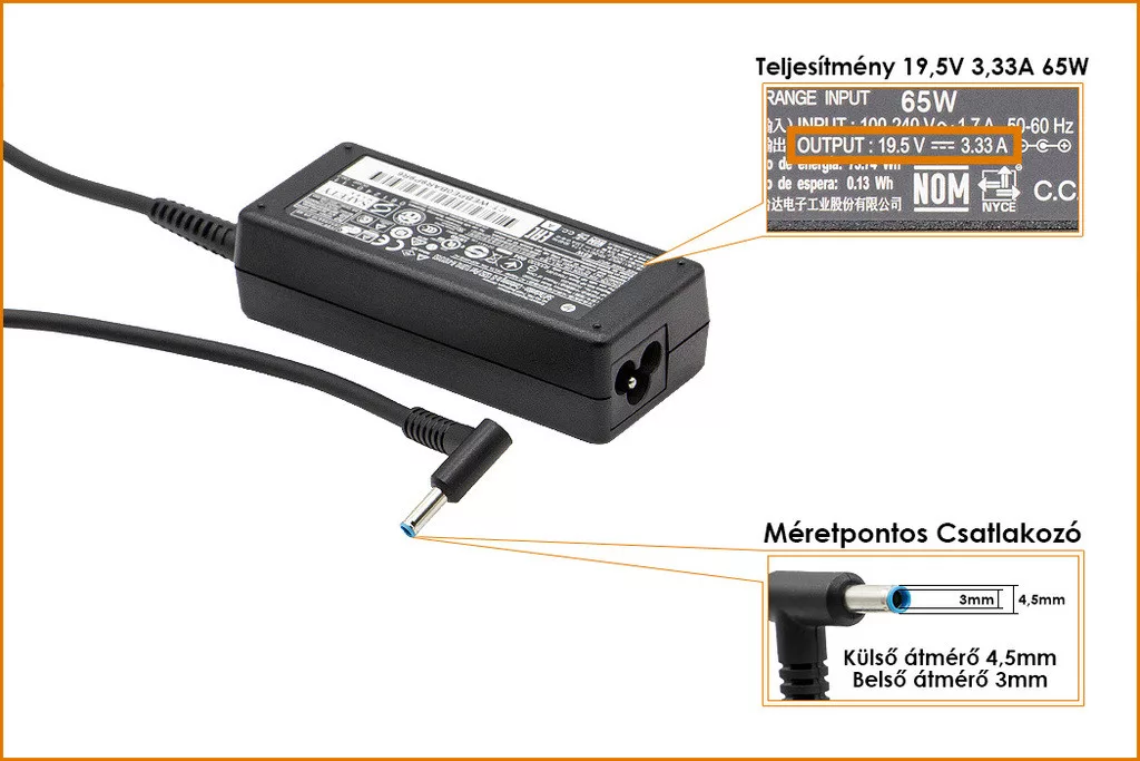 Kerek Csatlakozó méretei, amit a laptopba dugsz: kívül 4,5mm, belül 3mm!