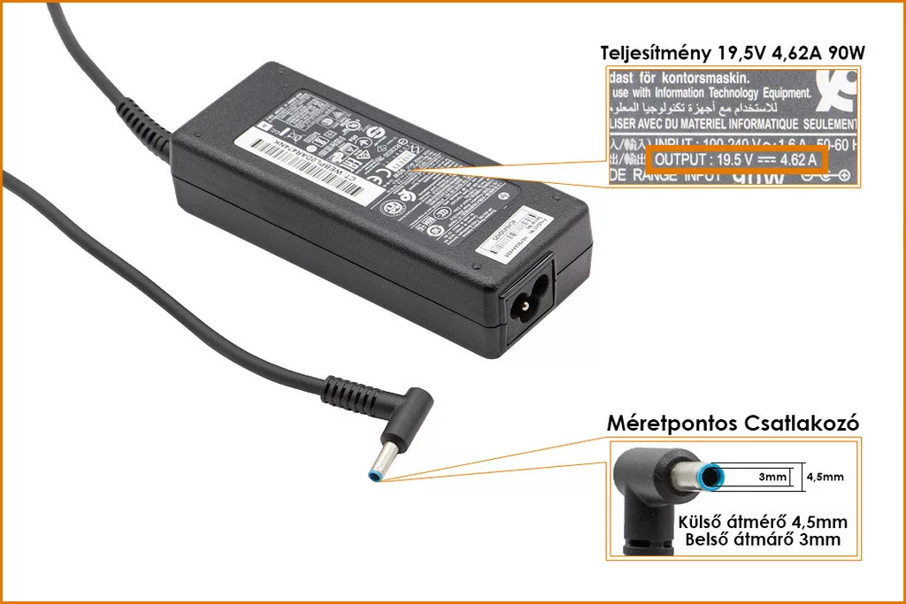 Kerek Csatlakozó méretei, amit a laptopba dugsz: kívül 4,5mm, belül 3mm!