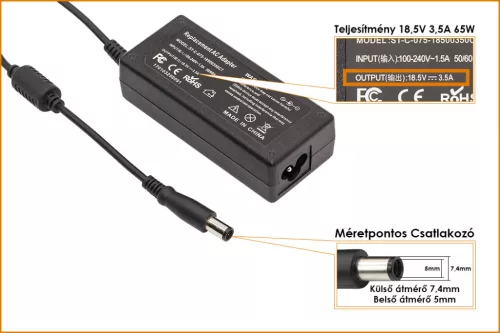 HP Compaq ED494AA 18.5V 3.5A 65W center-pin középső tüskés helyettesítő új töltő (391172-001, 391172-001)