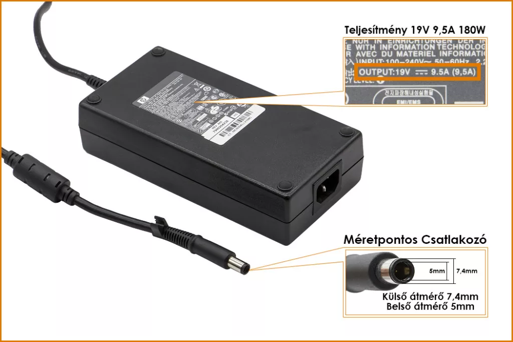 Eredeti, Gyári 180 Wattos laptop töltő HP laptophoz.