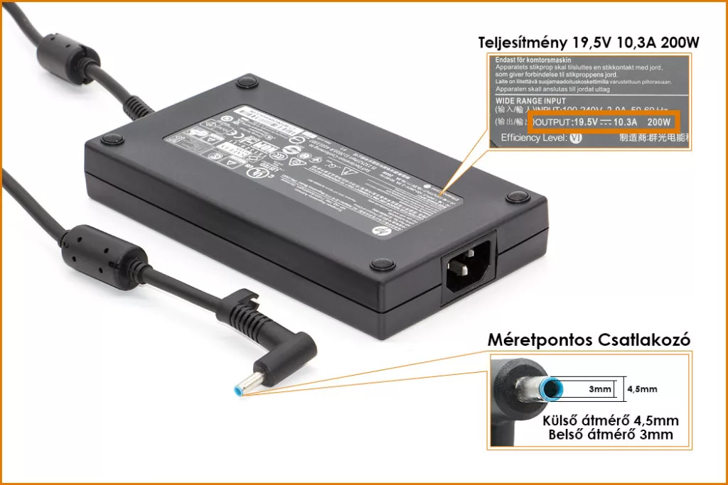 Eredeti, Gyári 200 Wattos laptop töltő HP laptophoz.
