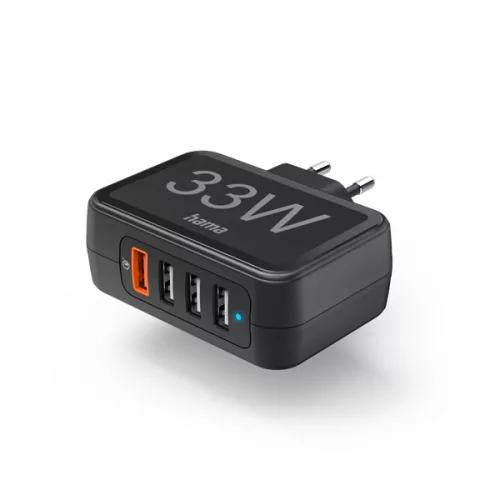 Hama Hálózati töltő - 201629 (4in1, 4xUSB-A, PD/QC, 33W, fekete)