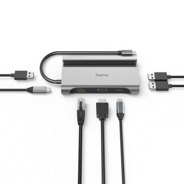 Hama USB HUB - 200143 (USB-C 7in1, 3xUSB 3.1, 2xUSB-C, 1xHDMI, 1xLAN, 100W PD, szürke)