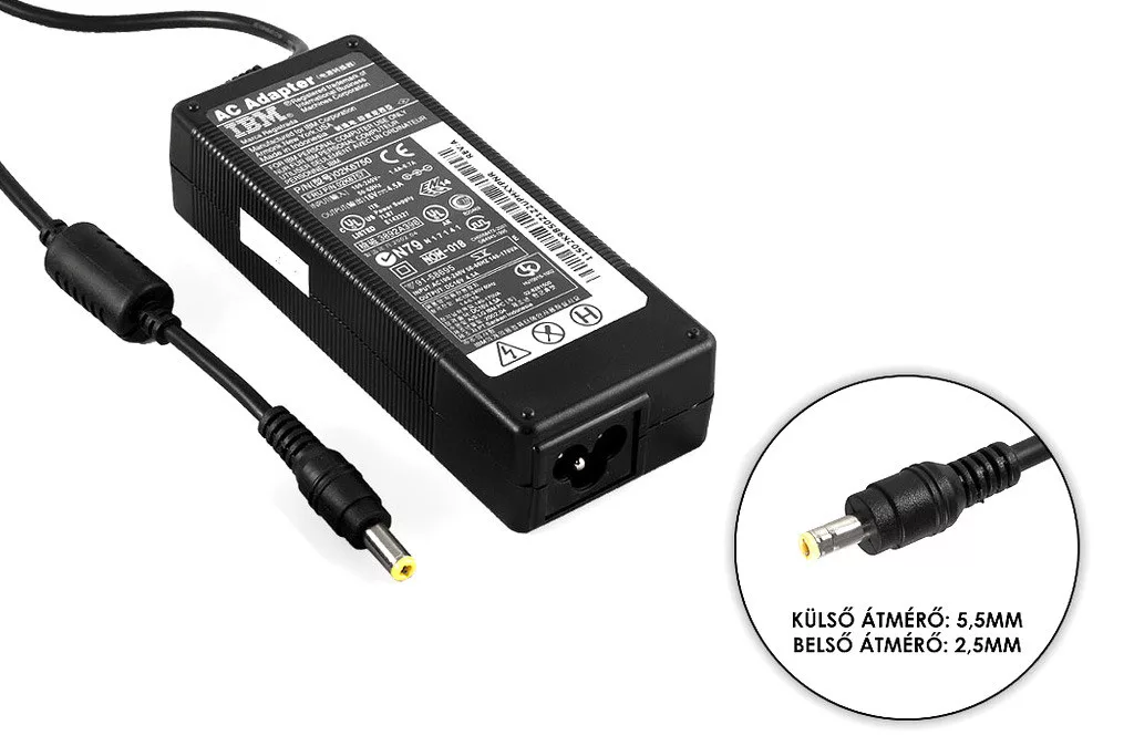 Kerek Csatlakozó méretei, amit a laptopba dugsz: kívül 5,5mm, belül 2,5mm!