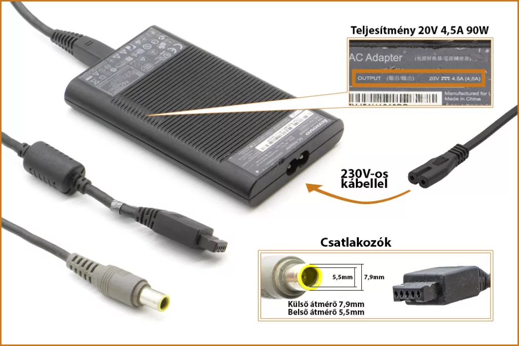 IBM Lenovo ThinkPad 20V 4.5A 90W Ultraslim AC gyári használt töltő (41R4510)