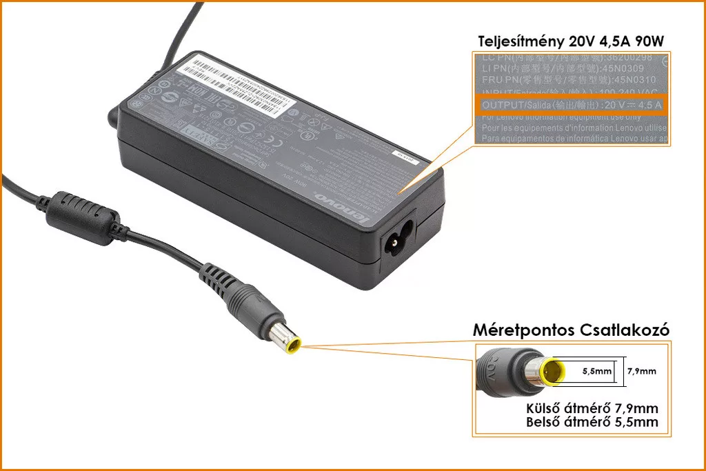 Kerek Csatlakozó méretei, amit a laptopba dugsz: kívül 7,9mm, belül 5,5mm!
