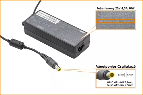 IBM Lenovo ThinkPad 20V 4.5A 90W gyári új töltő (40Y7649)