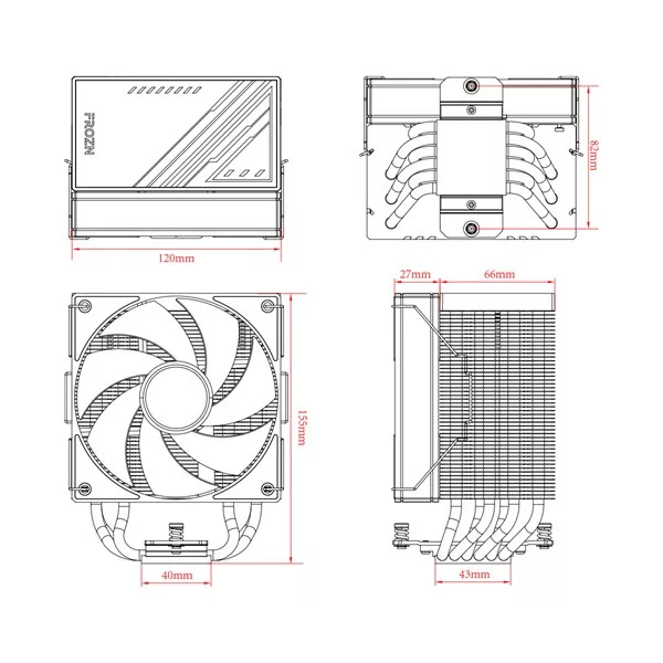ID-Cooling CPU Cooler - FROZN A610 ARGB WHITE (29.9dB; max. 132,54 m3/h; 4pin, 4 db heatpipe, 12cm, A-RGB, PWM)