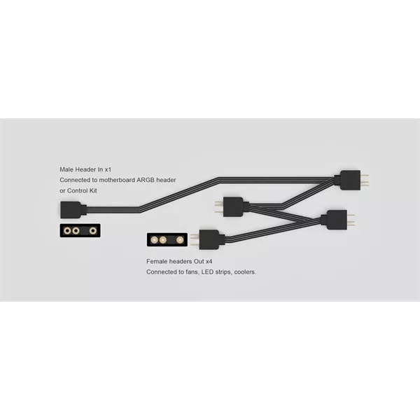 ID-Cooling RGB elosztó - FS-04 ARGB  (1 db bemenet ,4 dbkimenet 3pin PWM)